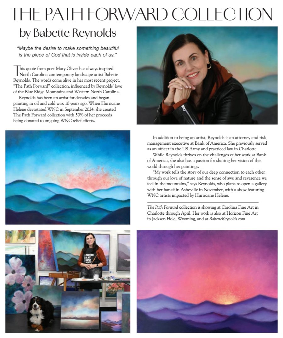 The seeds of The Path Forward Foundation were planted when one of our founders Asheville artist Babette Reynolds created The Path Forward Collection of paintings in the fall of 2024 to raise funds for Hurricane Helene relief and recovery. The proceeds from The Path Forward Collection were contributed to organizations and initiatives deeply engaged in hurricane relief and recovery work in WNC, including but not limited to: